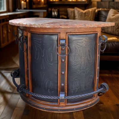 "Tequila Stave Wine Console" - Wine bar console with barrel stave construction and hand forged nails