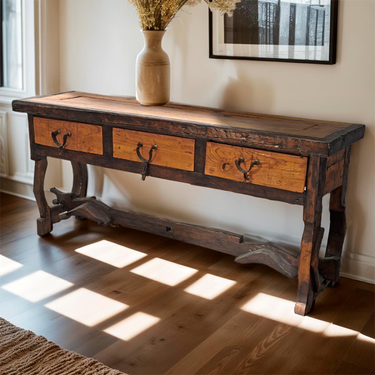 THREE DRAWER YOKE BASE CREDENZA WITH ORIGINAL SPUR PULLS