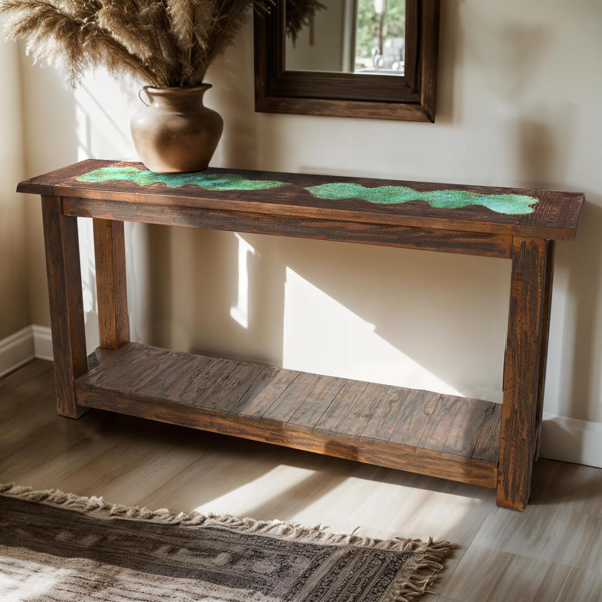 TWO LEVEL CONSOLE WITH TURQUOISE COPPER TOP CONSOLE