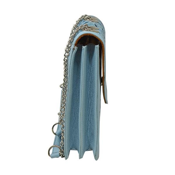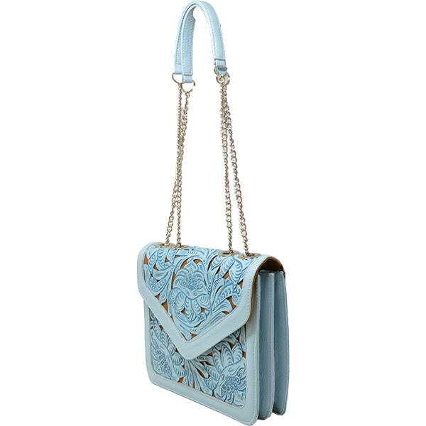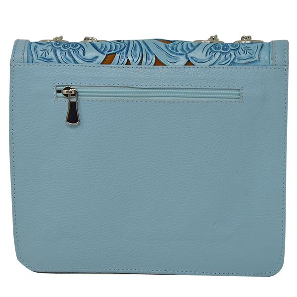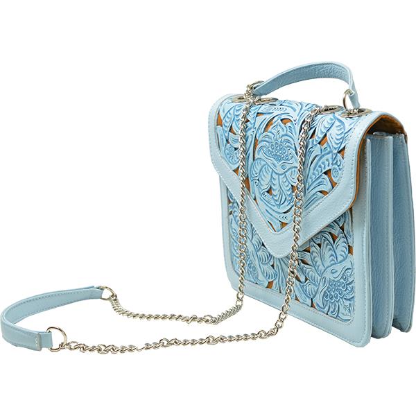 APPALOOSA PERFORATED 100% LEATHER HAND TOOLED BAG FT SILVER BLATE CHAIN - BLUE 10" x 2 .5" x...