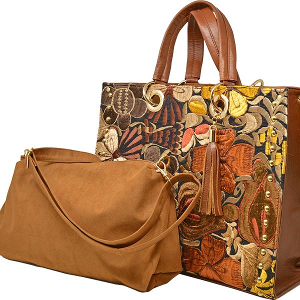 EDEN FALL HAND EMBROIDERED PANEL BAG SET 15" x 5" x 12"