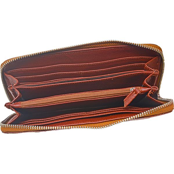 HAND TOOLED AND PREFORATED WALLET - RUSSET WITH CAMEL INLAY 8" x 1" x 4 .5"