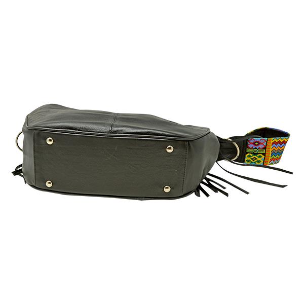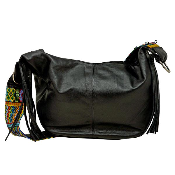 SANTA FE 100% LEATHER SHOULDER BAG. HAND BEADED STRAP - BLACK - STRAP BEAD WORK VARIES 15" ...