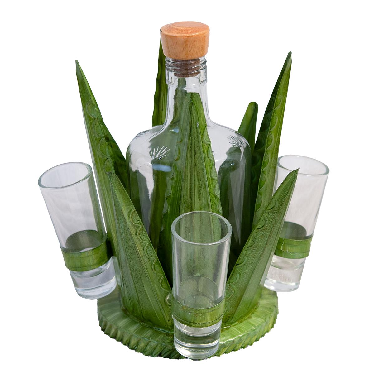 AGAVE TEQUILA DISPLAY WITH 1 BOTTLE AND 4 SHOT GLASSES IN LIME GREEN, SMALL
