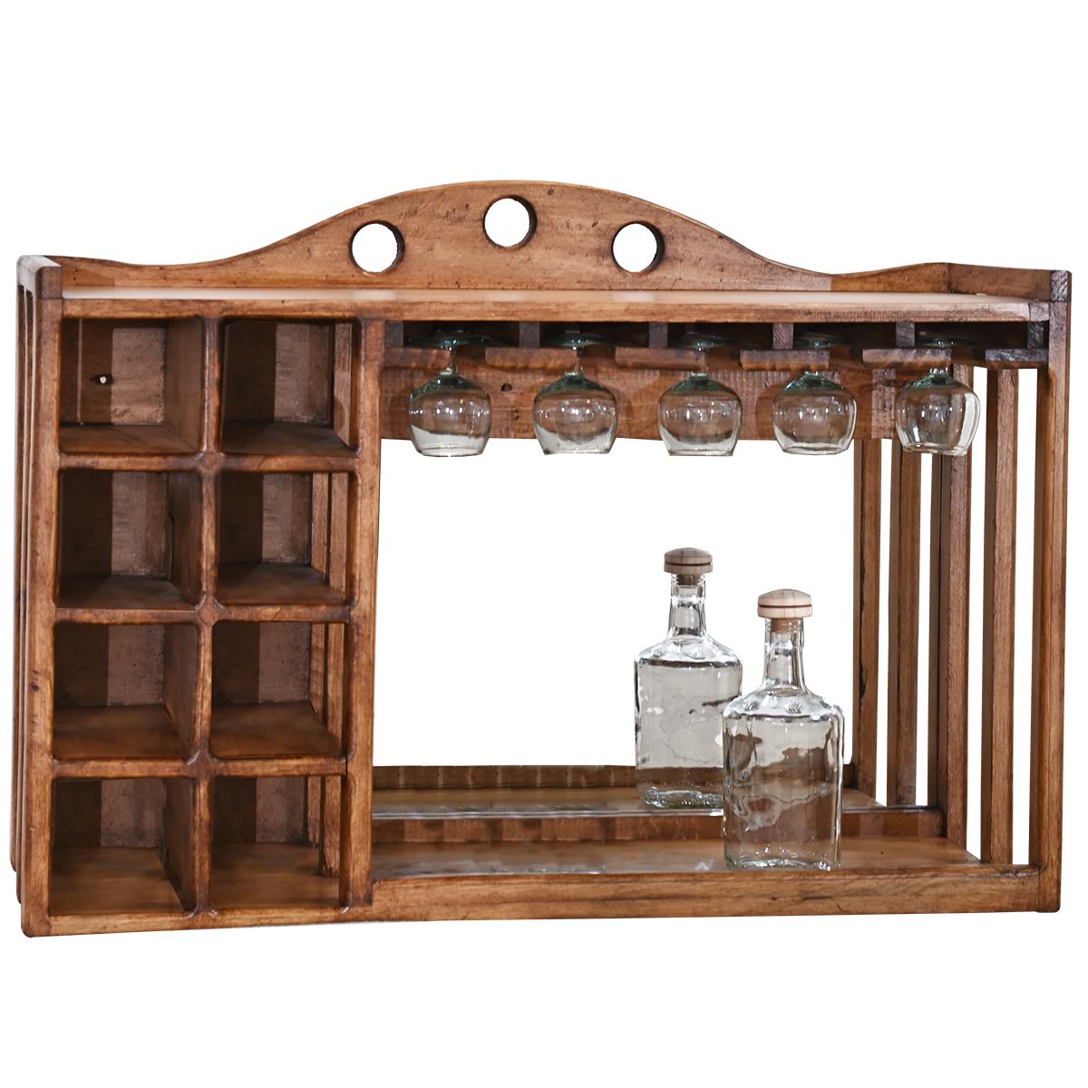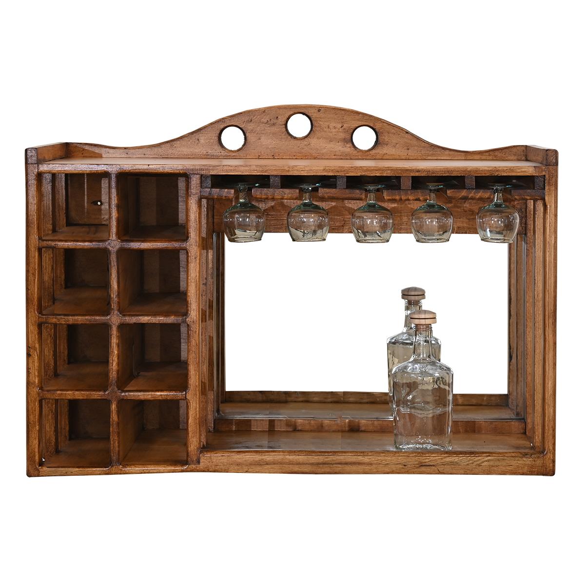 WOOD LIQUOR DISPLAY CABINET WITH 4 SHOT GLASSES AND 3 BOTTLES