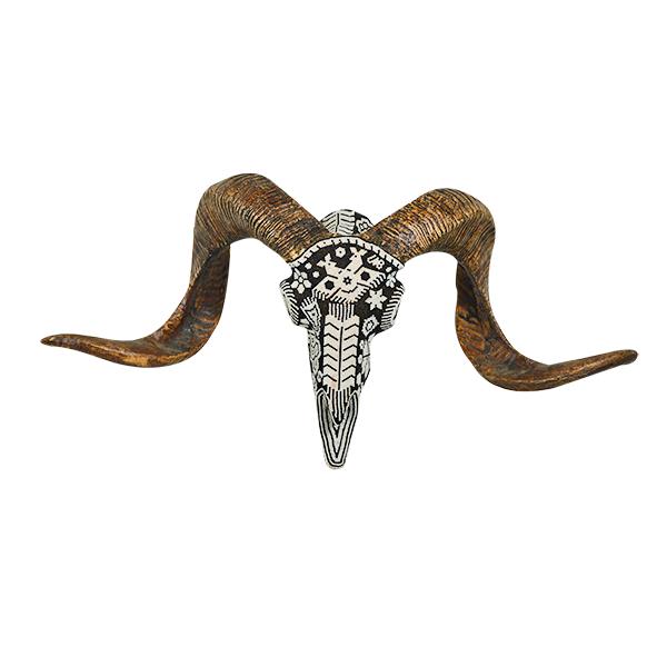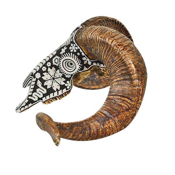 HUICHOL SKULL - SYNTHETIC SKULL WITH TRADITIONAL HUICHOL HAND BEADING - BLACK & WHITE 22" ...