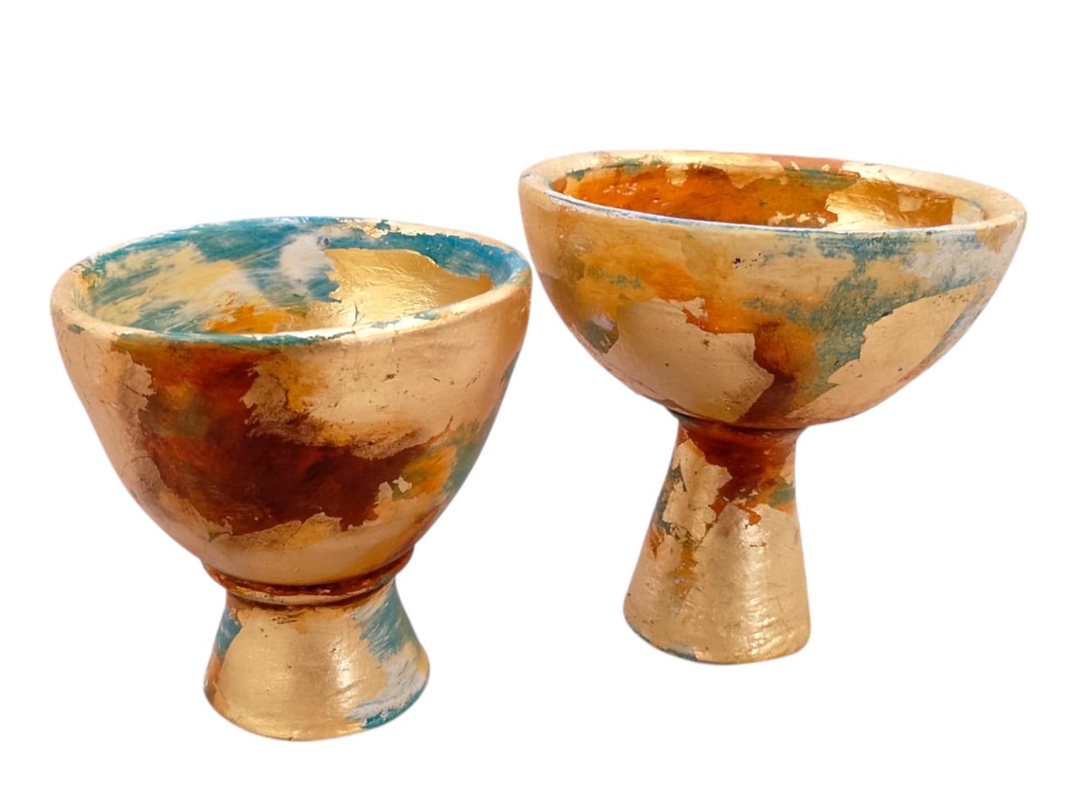 SET OF 2 CLAY CUPS IN SHINY GOLD FINISH (4.5x5, 5.5x6)