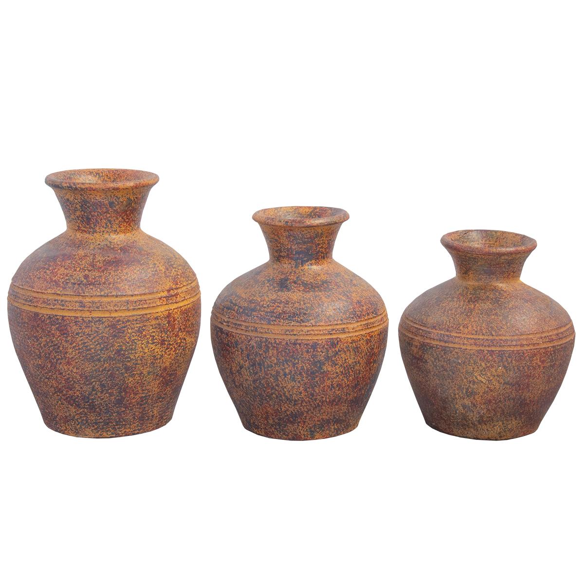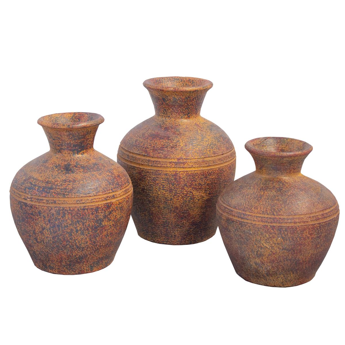 SET OF 3 RUSTIC VASES (3.5x7x8, 4.5x7x9, 4.5x7.5x10.5)