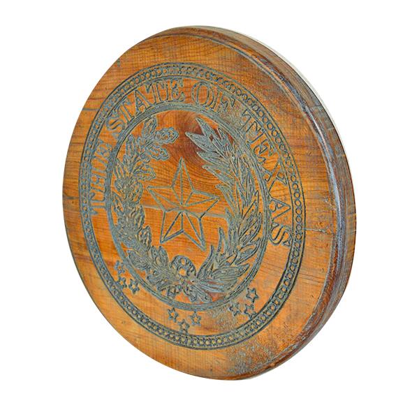 TEXAS STATE SEAL ETCHED IN QUALITY WOOD IN GRAY WASH 16" D X 1.5"