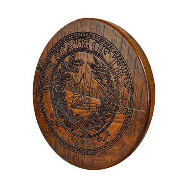 TEXAS STATE SEAL ETCHED IN QUALITY WOOD WITH BLACK WASH 16" D X 1.5"