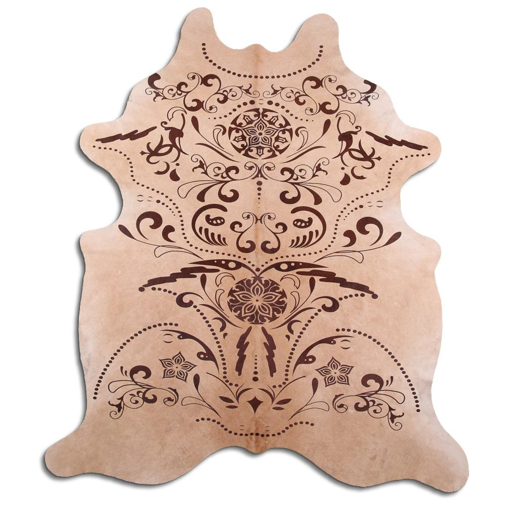 BAROQUE BROWN ON LIGHT BEIGE COWHIDE RUG - 3-5 SQM LARGE