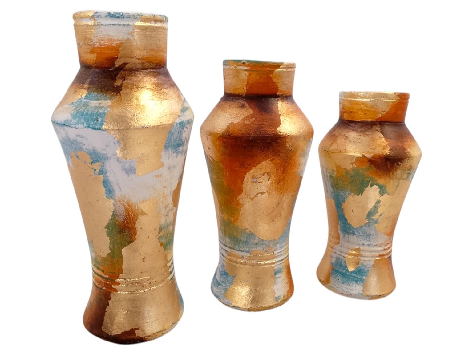 SET OF 3 CLAY VASES IN SHINY GOLD FINISH (4x10, 4x11.5, 4x13.5)