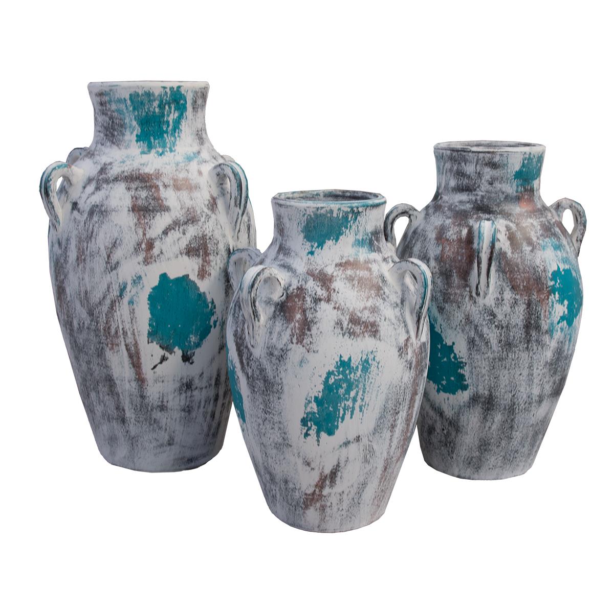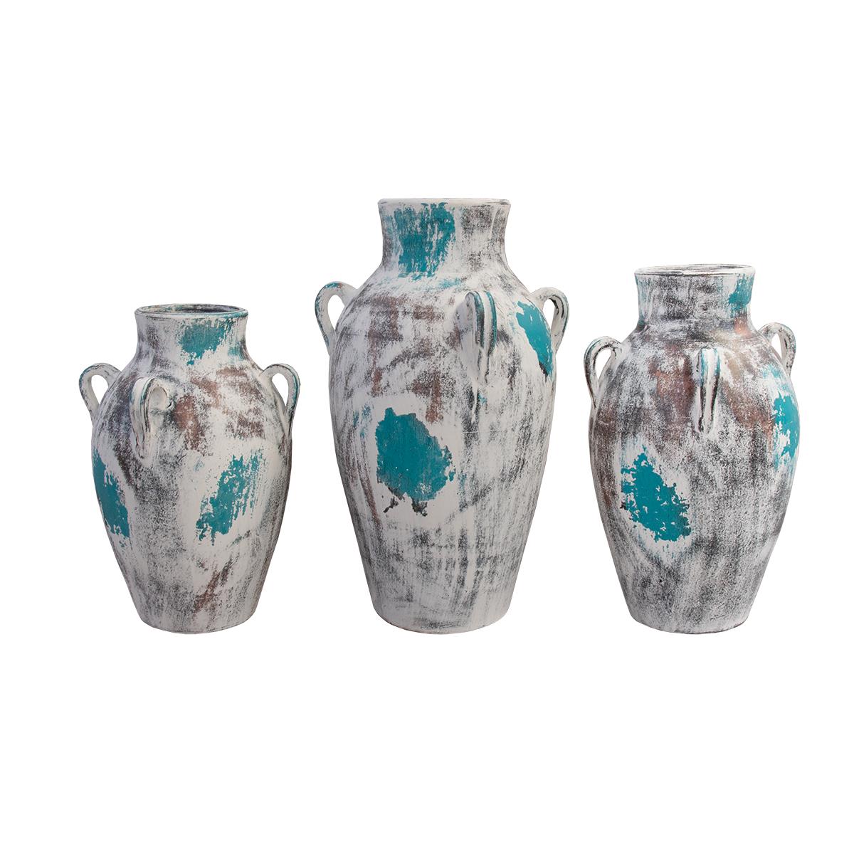 SET OF 3 HANDLED POTS - WHITE/TURQUOISE (12x17, 12x19.5, 13x22.5)