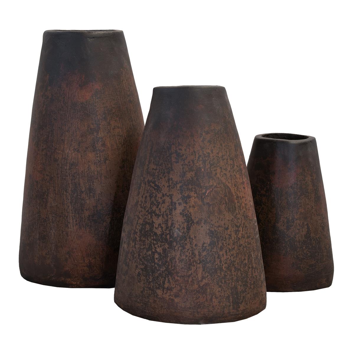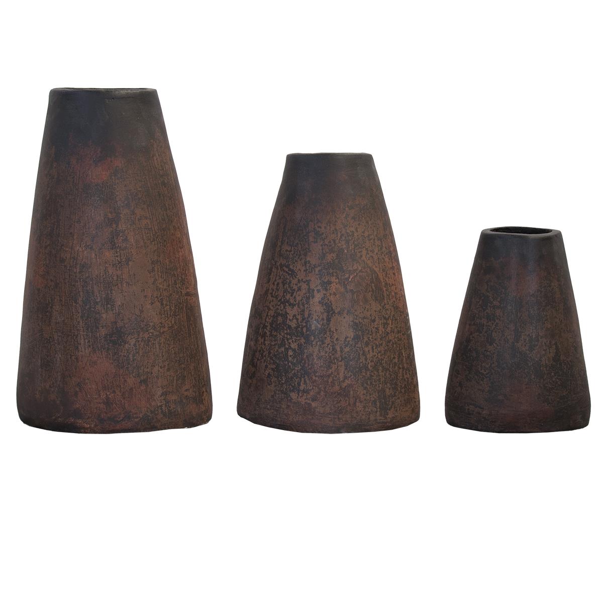 SET OF 3 TRIANGULAR POTS - BROWN (7.5x4.5x11, 9x 6x15, 11x 6.5x19)