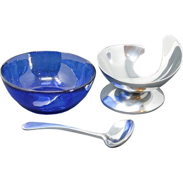 STYLIZED PARFAIT BOWL WITH SPOON (BASE: 5" x 3.5" BOWL: 5.5" x 2" H SPOON: 6.5")