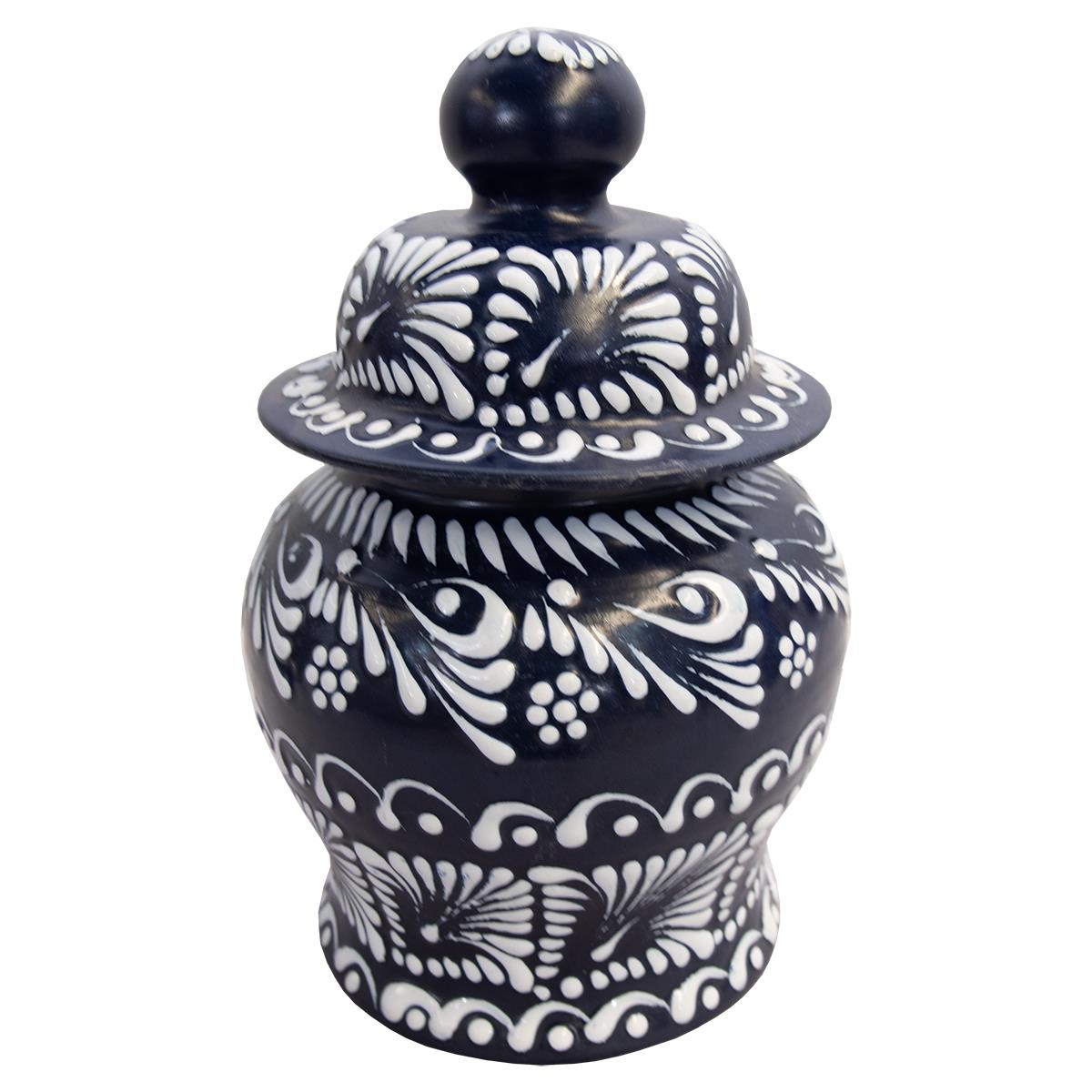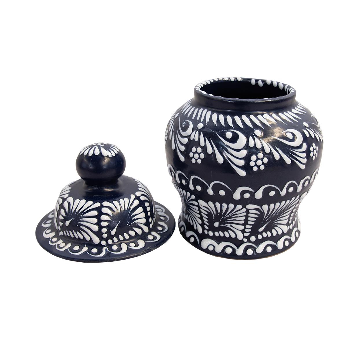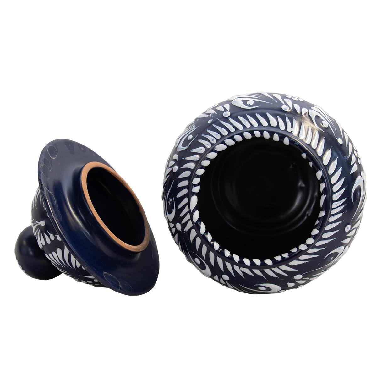 TALAVERA MINI LIDDED JAR - DARK BLUE/WHITE