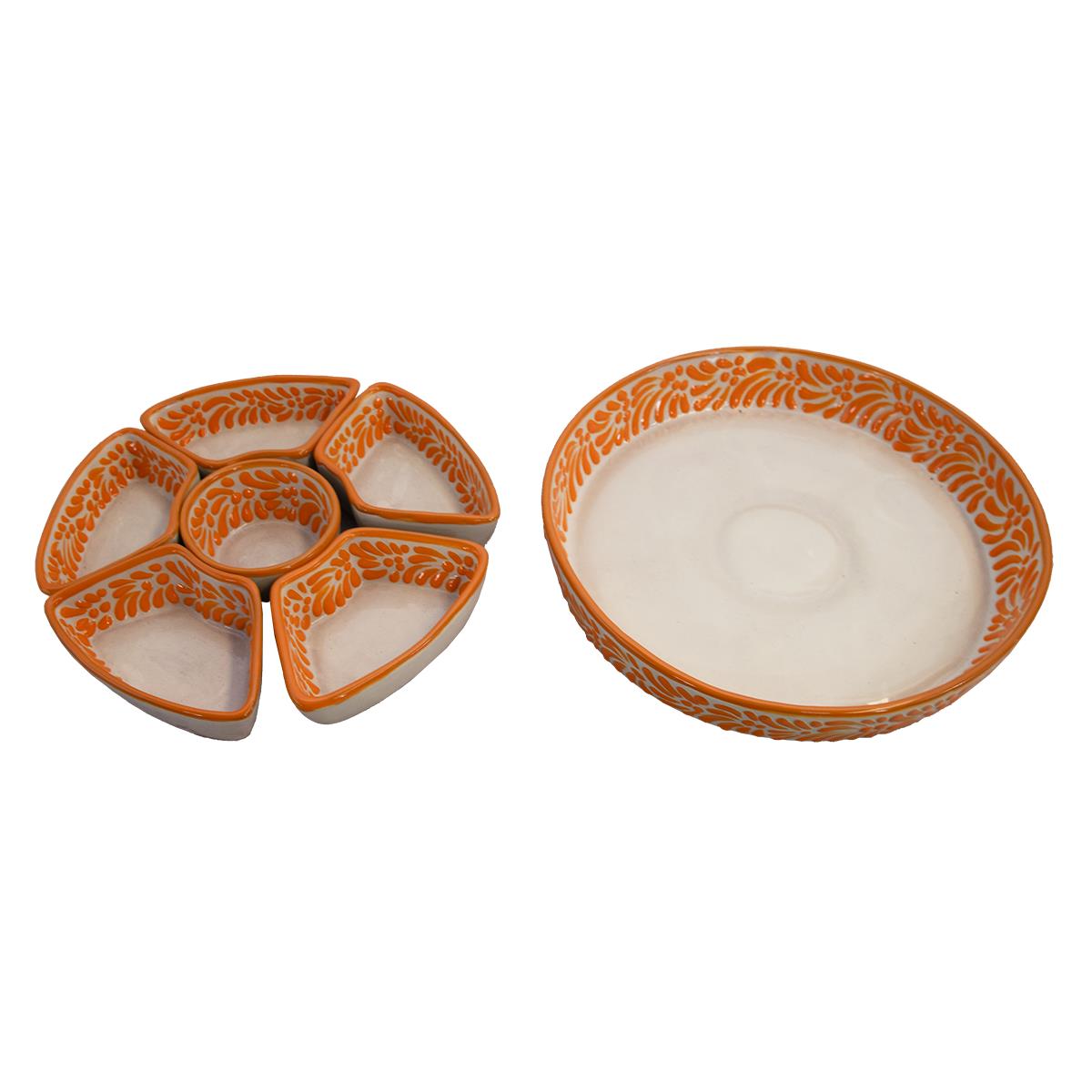 TALAVERA SERVING DISH WITH REMOVABLE PIECES - ORANGE/WHITE