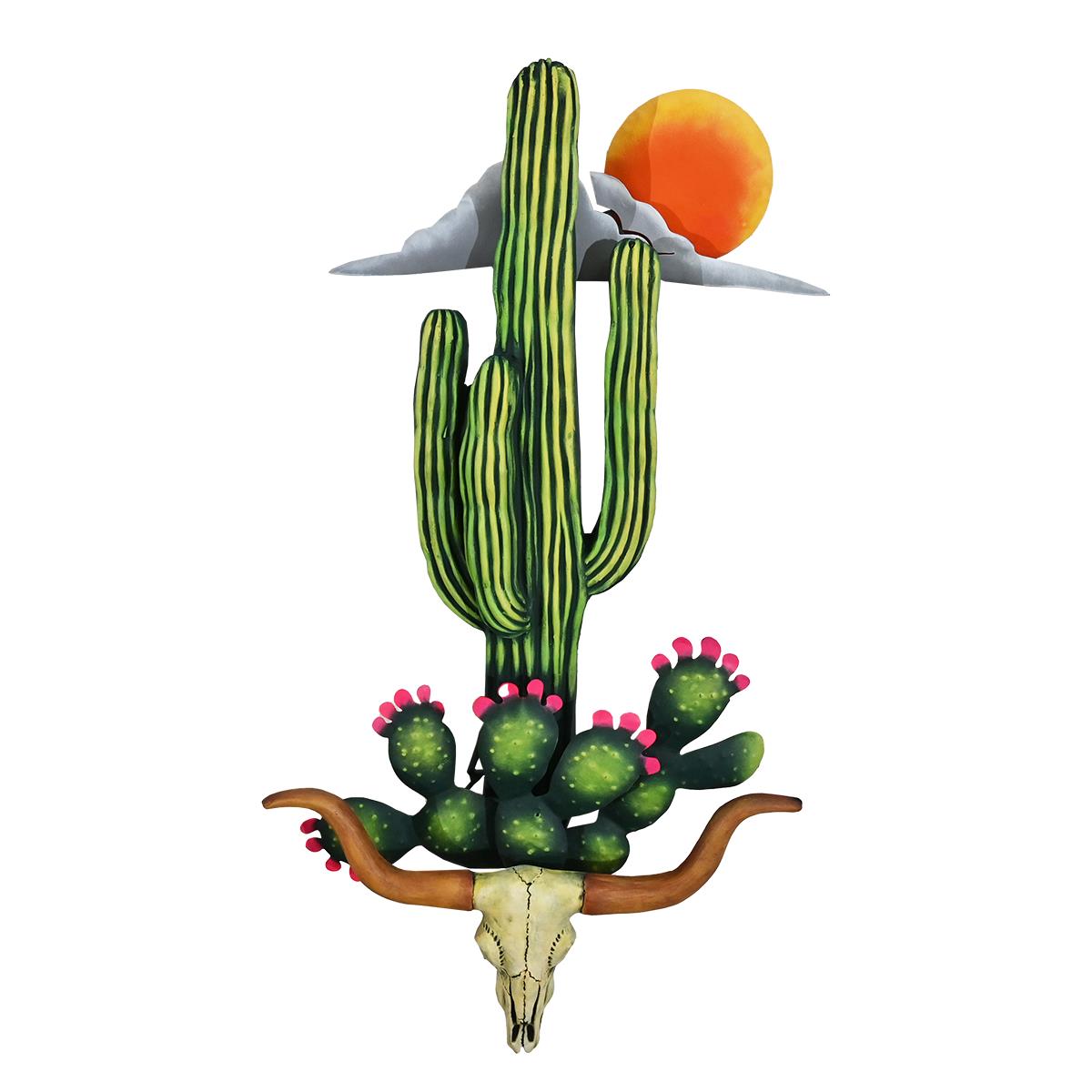 CACTUS, SUN, CLOUD & LONGHORN SKULL WALL (CENTER) HANGING