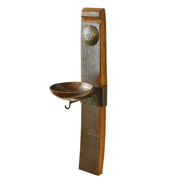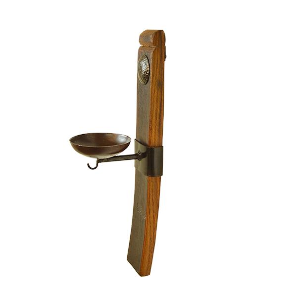 WHISKEY BARREL STAVE - WALL MOUNTED CANDLE HOLDER FEATURES HAND FORGED STEEL AND CLAVOS 16...