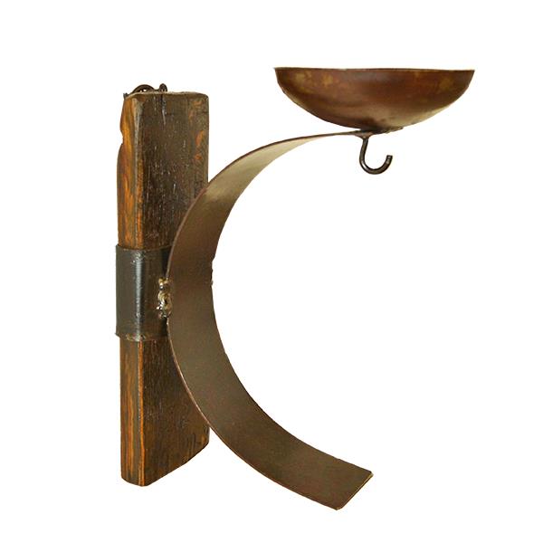 WHISKEY BARREL STAVE - WALL MOUNTED CANDLE HOLDER FEATURES HAND FORGED STEEL AND CLAVOS 9....