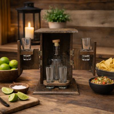 NATURAL AGAVE TEQUILA DISPLAY WITH 1 BOTTLE AND 2 SHOT GLASSES