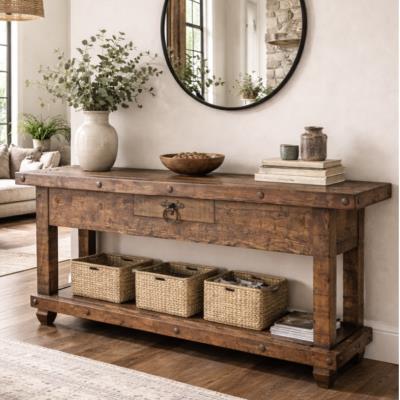 OLD DOOR TOP BLACK WASH FINISH HAND CARVED CONSOLE