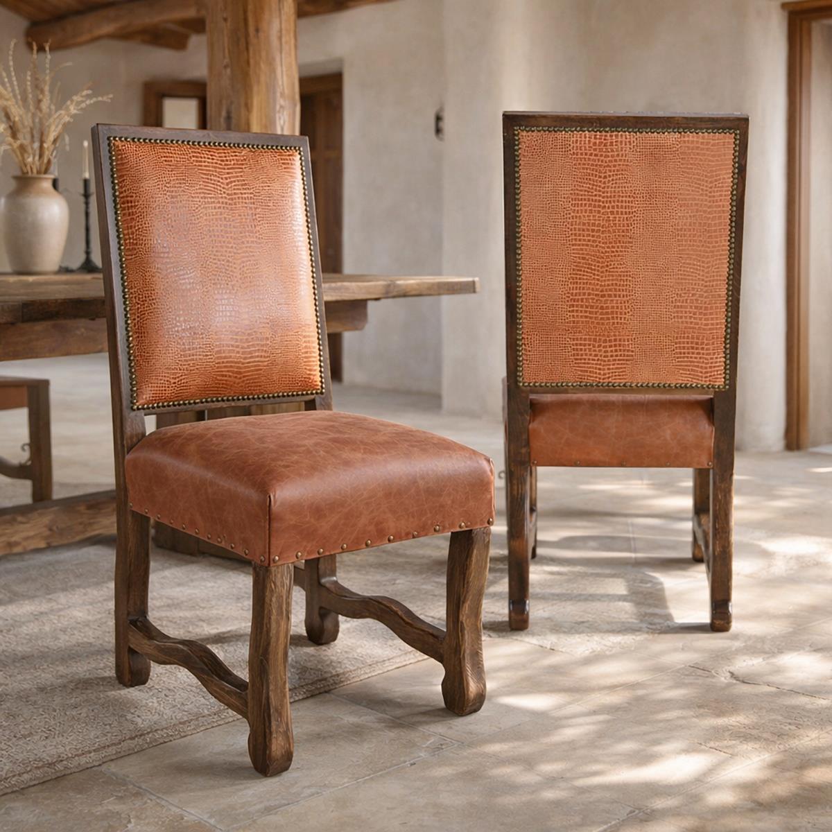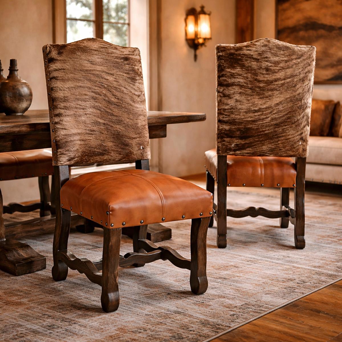 Cognac Upholstered Side Chair W/Cowhide