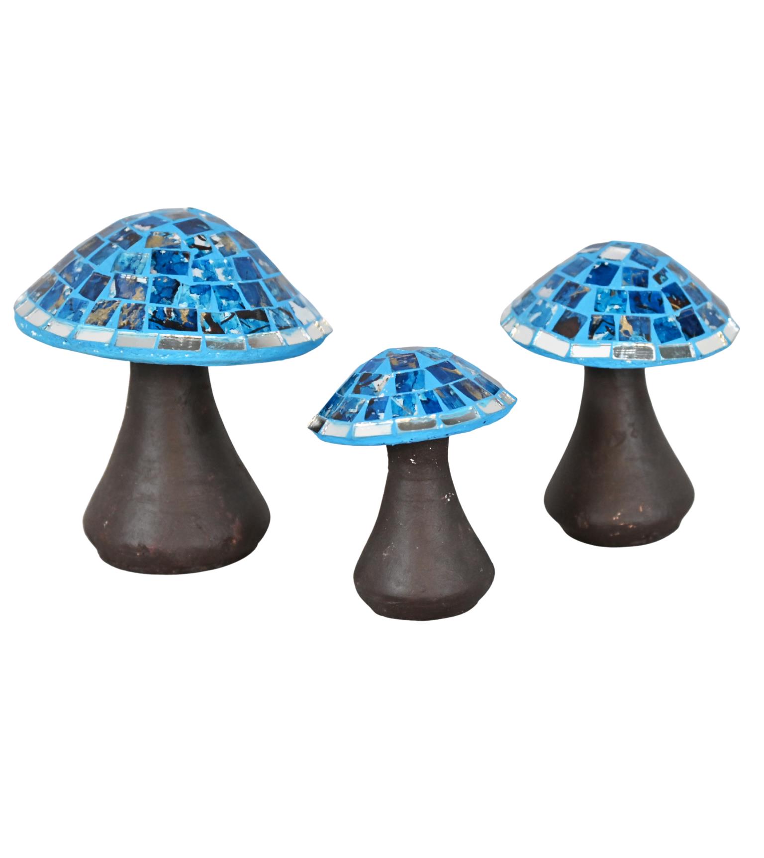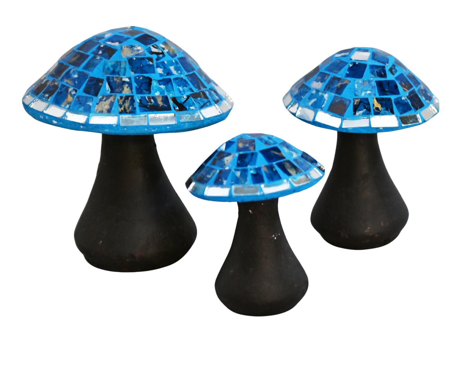 MOSAIC GLASS MUSHROOM FAMILY IN BLUE