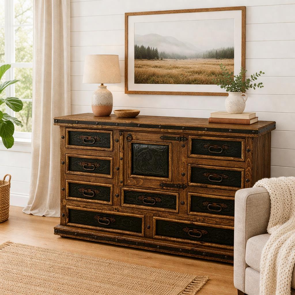 Door Dresser W/Tooled Leather