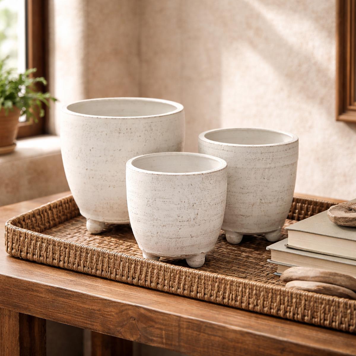 3 PC Jgo Mediano Olla Fina Beige Pots