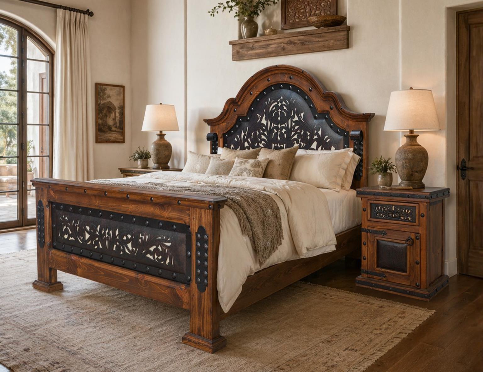 Drover Bed - Queen Tooled Leather & Hand Carved