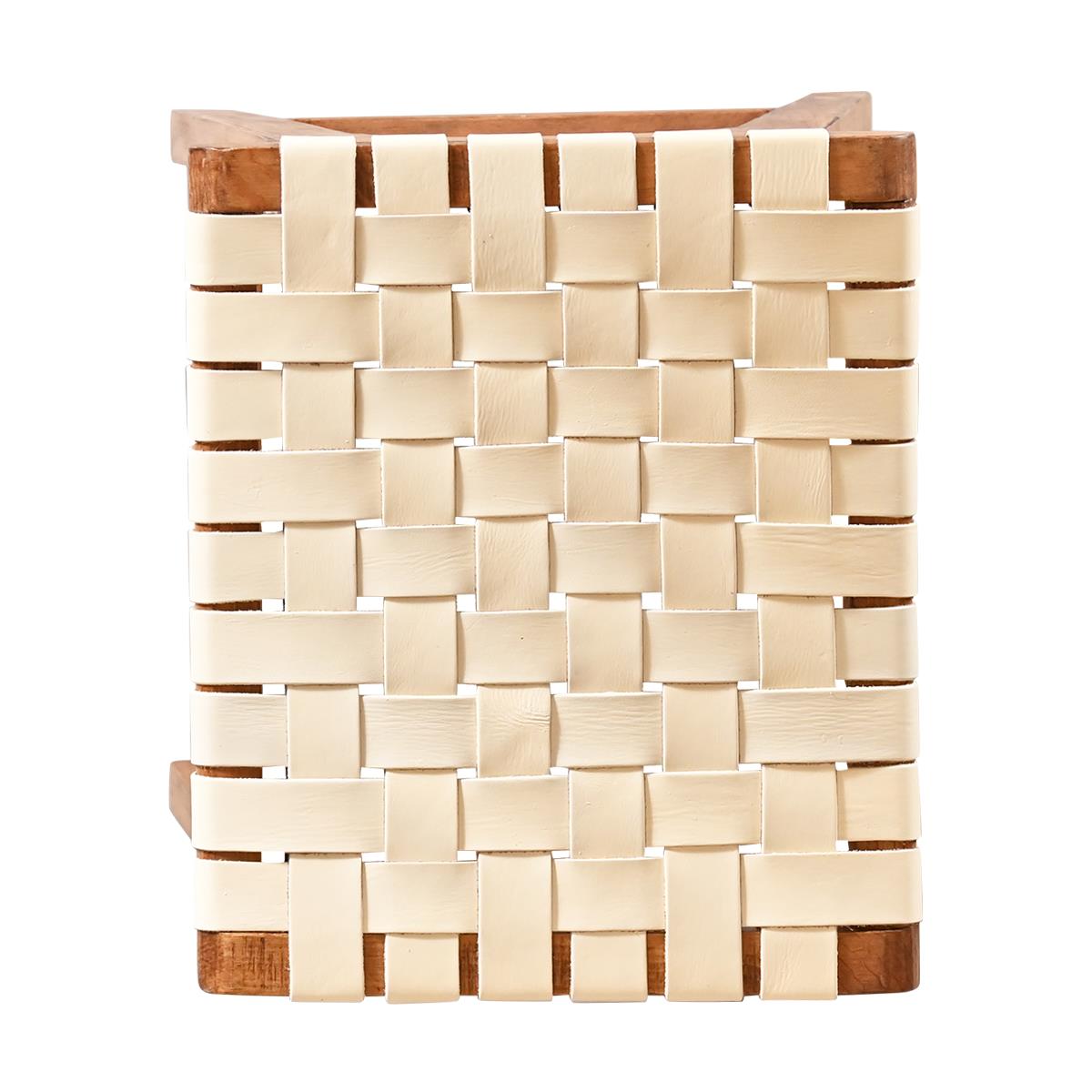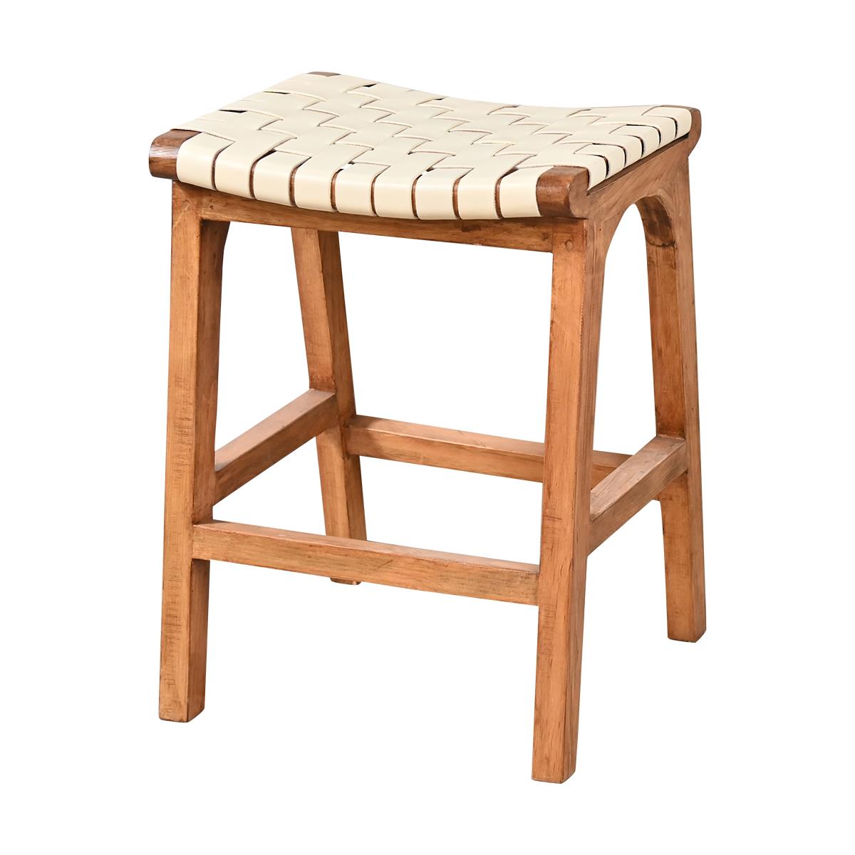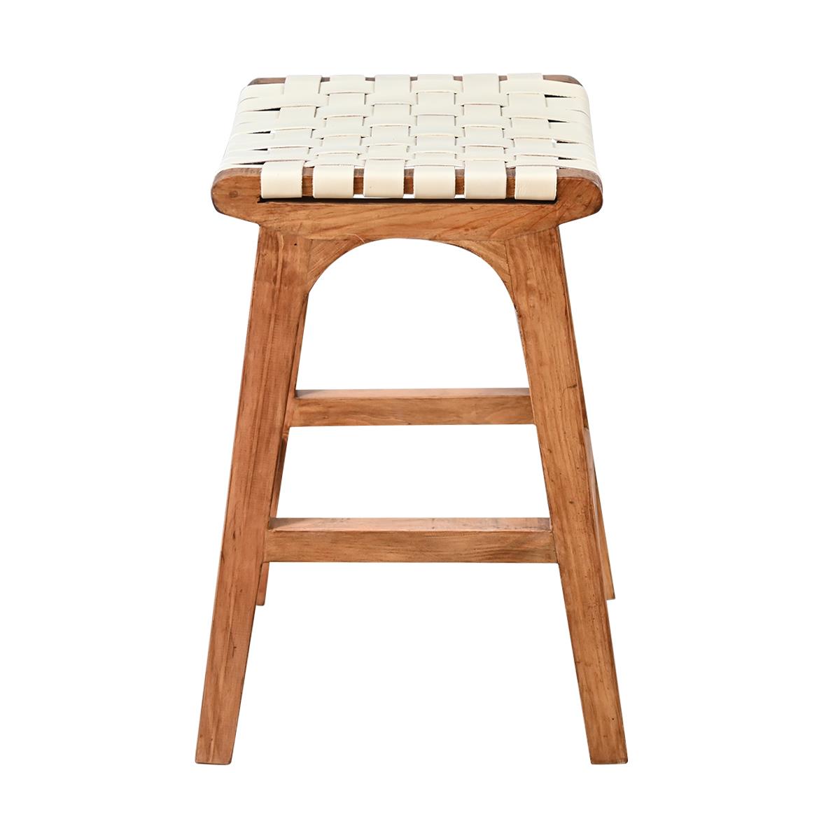 CROSSHATCHED LEATHER BARSTOOL IN WHITE