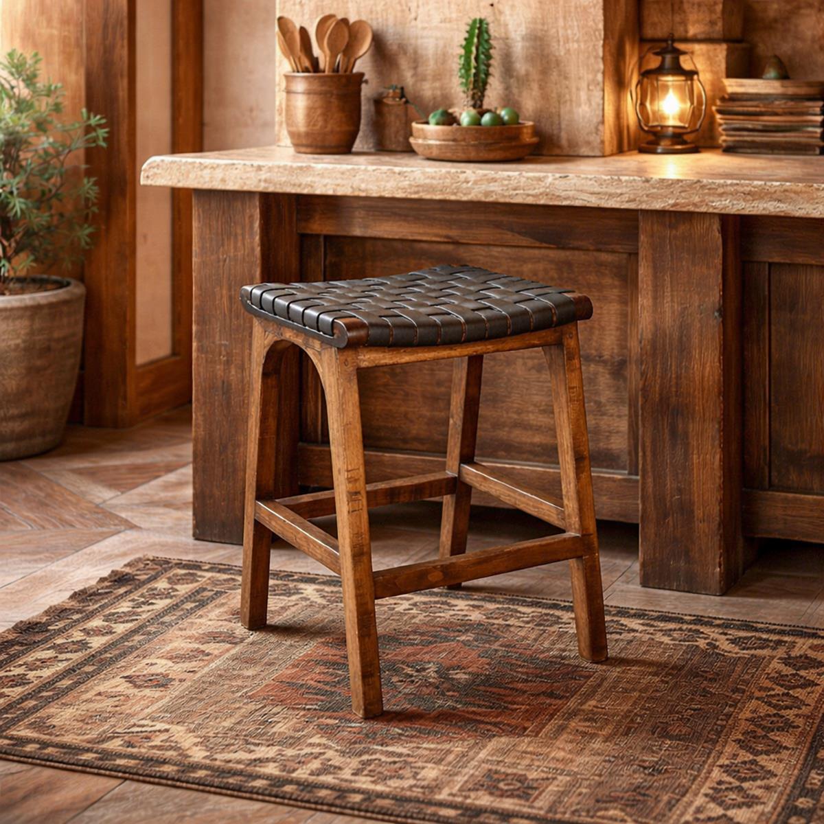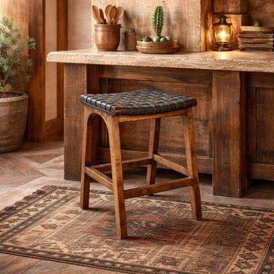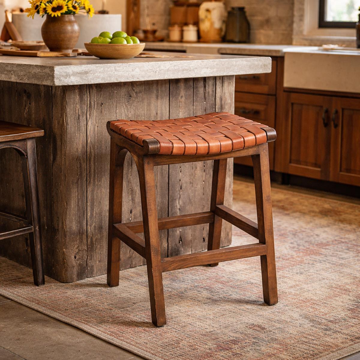 STITCHED LEATHER SADDLE BARSTOOL 26"