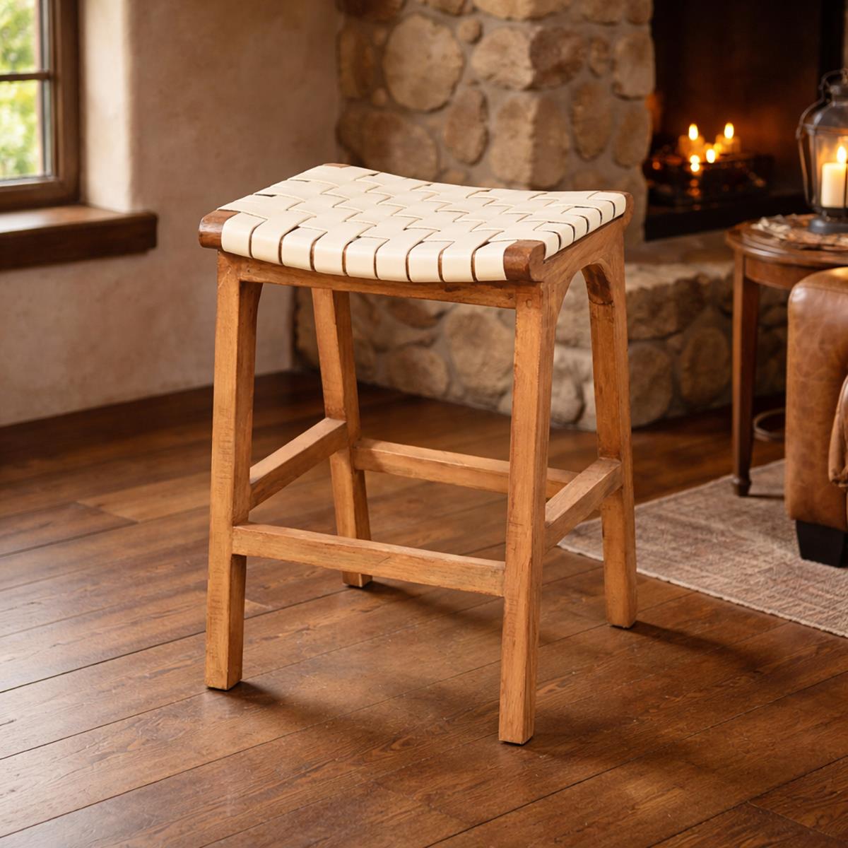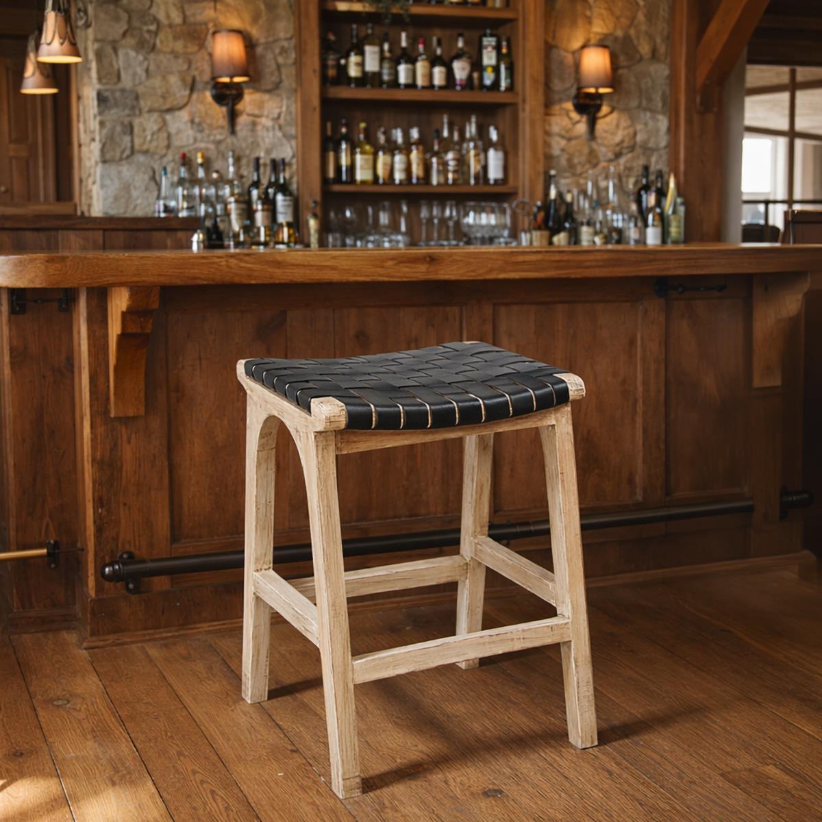 CROSSHATCHED LEATHER BARSTOOL IN NATURAL