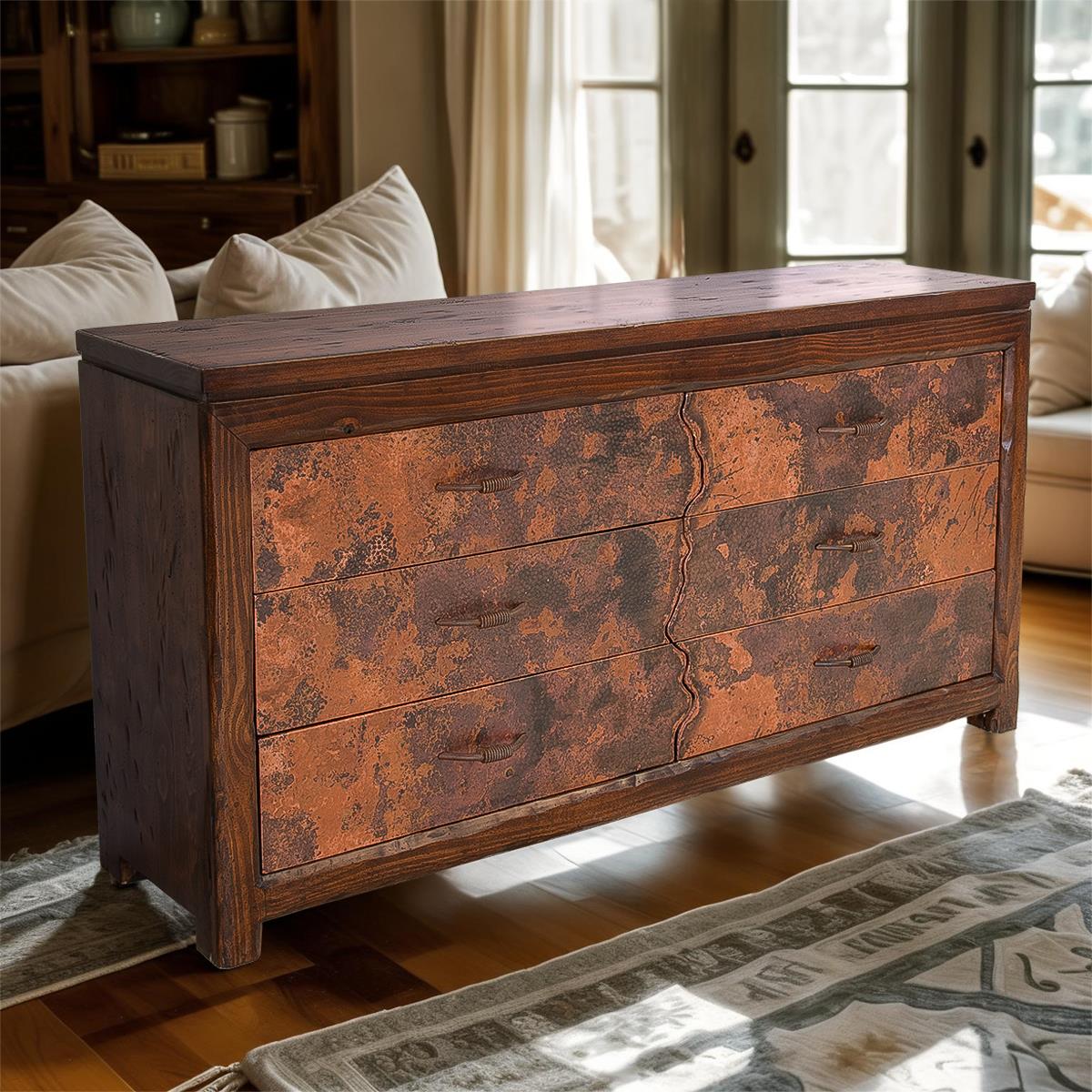 Teton Wood & Copper Dresser with Live Edge Drawers