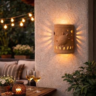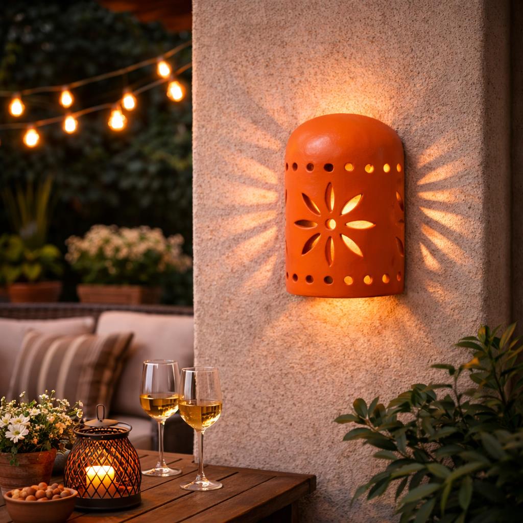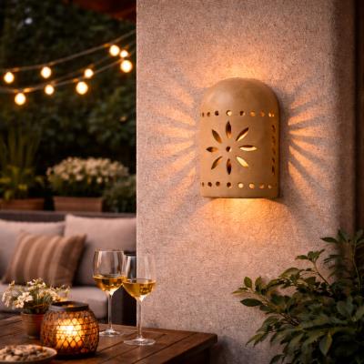 HERITAGE CLAY LIGHT COVER IN NATURAL FLORAL, HIGH FIRE CLAY WALL LIGHT COVER