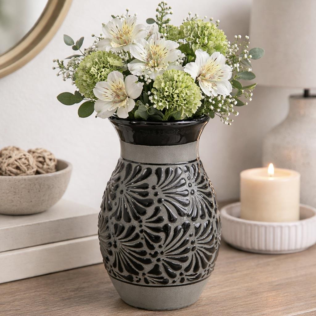 DESERT BLOOM TERRACOTTA CLAY VASE IN BLACK/GRAY