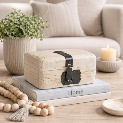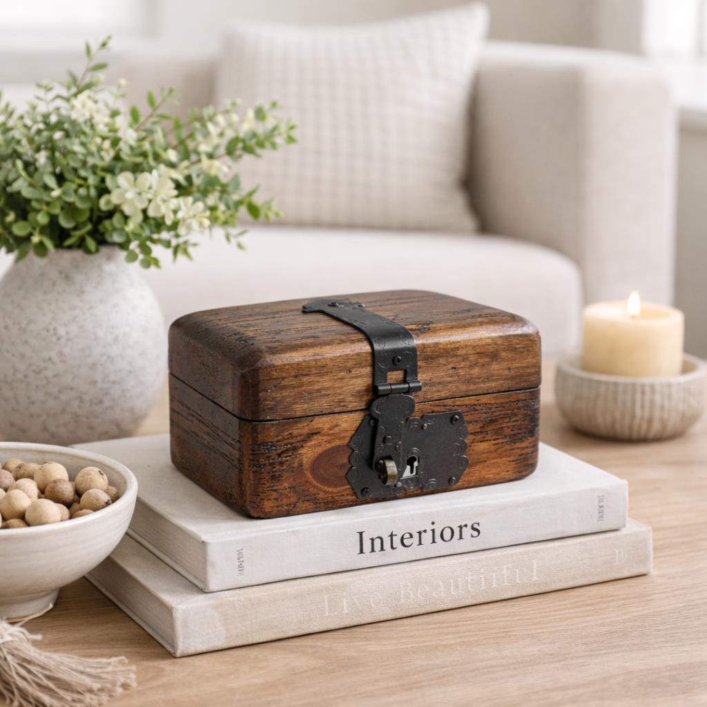 KEEPSAKES COLLECTION WOODEN TRINKET BOX IN NATURAL, WITH KEY