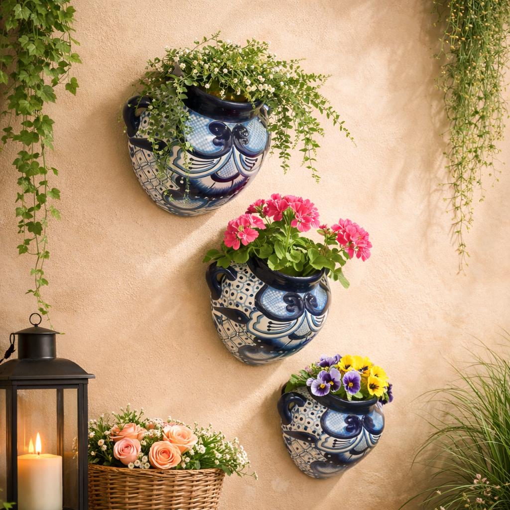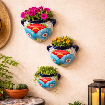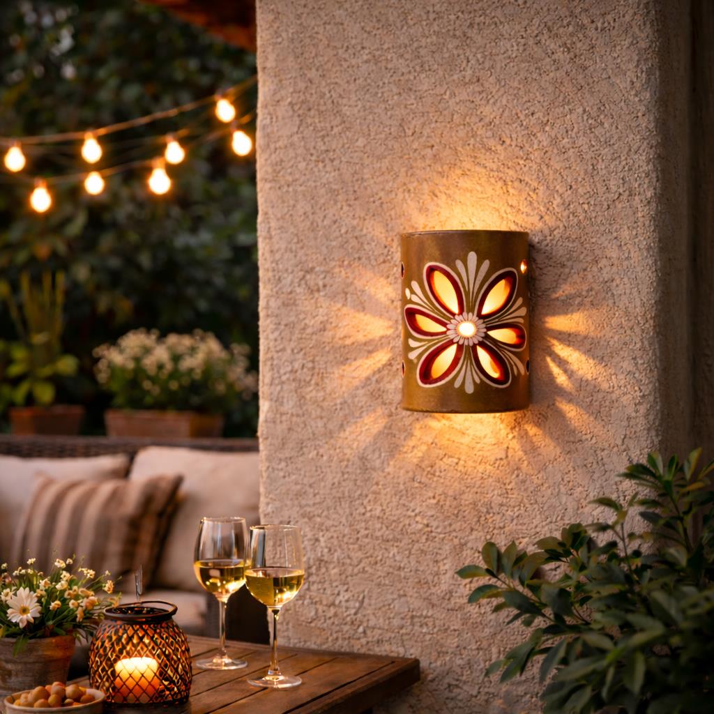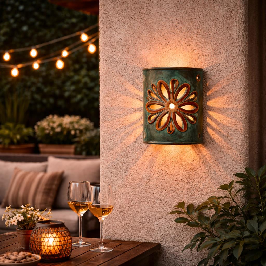 HERITAGE CLAY LIGHT COVER IN TURQUOISE FLORAL, HIGH FIRE CLAY WALL LIGHT COVER