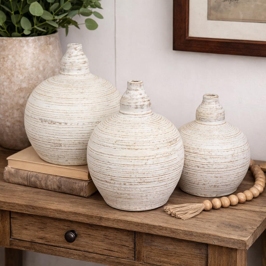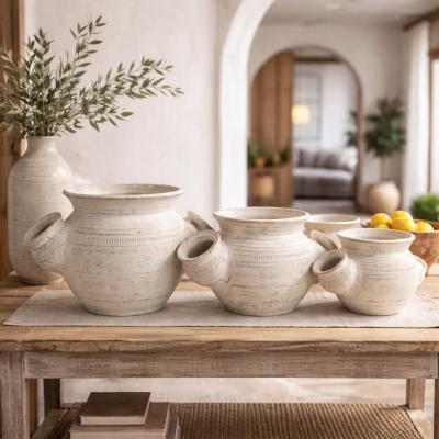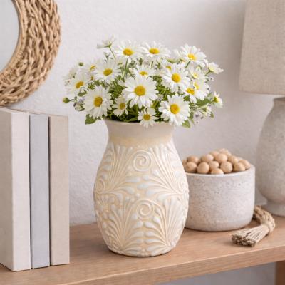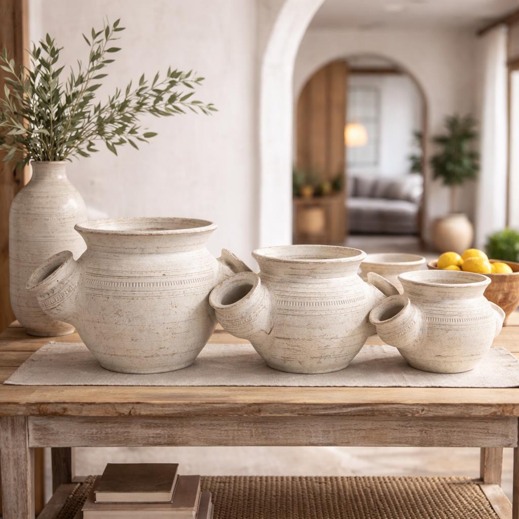DESERT BLOOM TERRACOTTA CLAY VASE IN YELLOW/WHITE