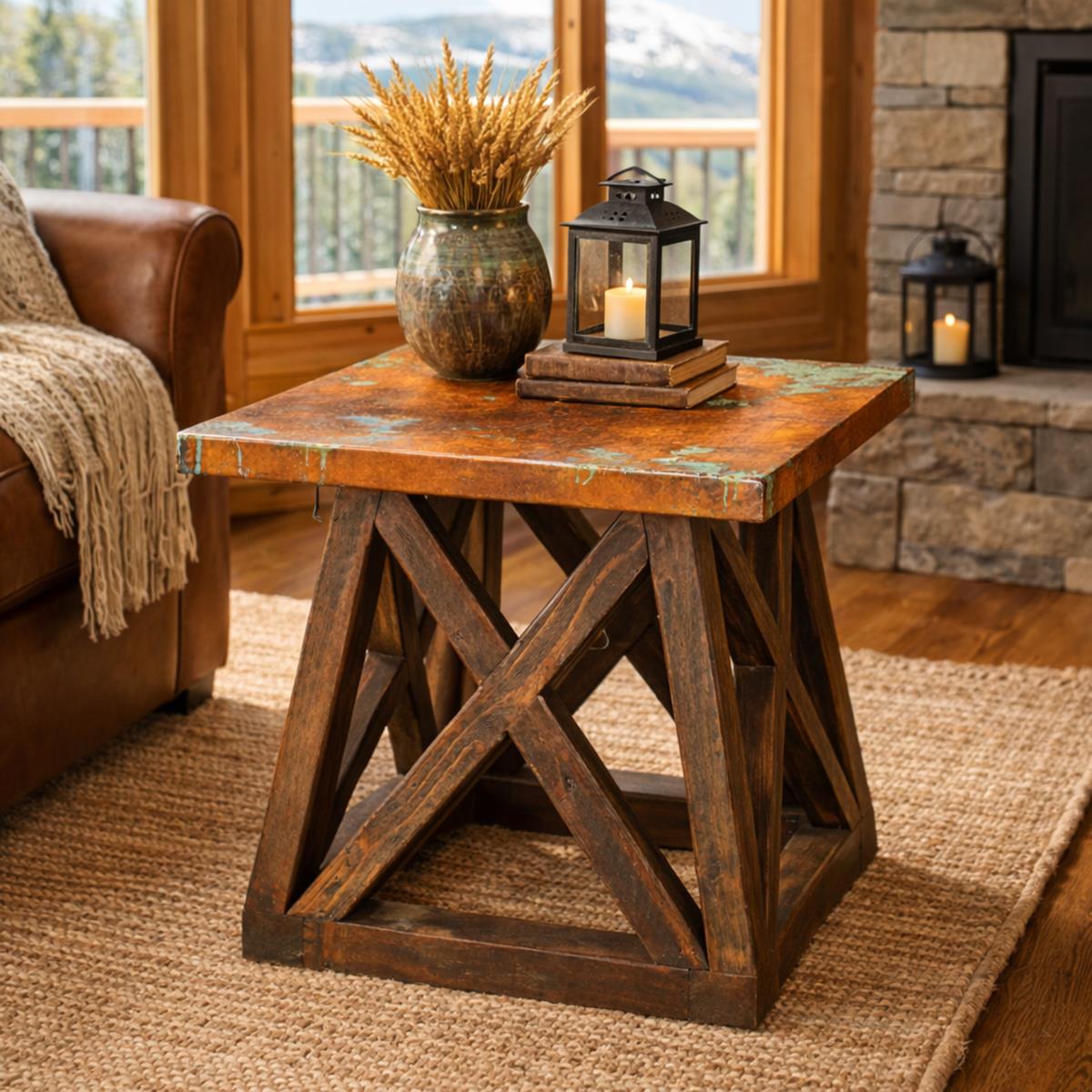 NATURAL FINISH COPPER SIDE TABLE MINIMAL BASE