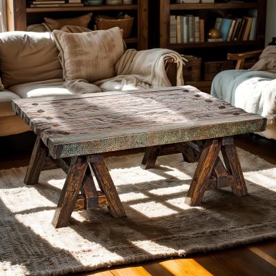 "STICHED" BRASS ENTRY/ DINING TABLE IN ANTIQUE FINISH