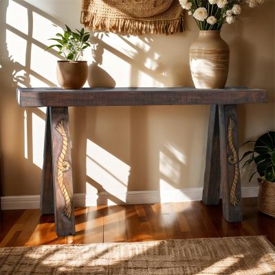 The Cimarron Canted Leg Console with Hand Carved Rope Motif