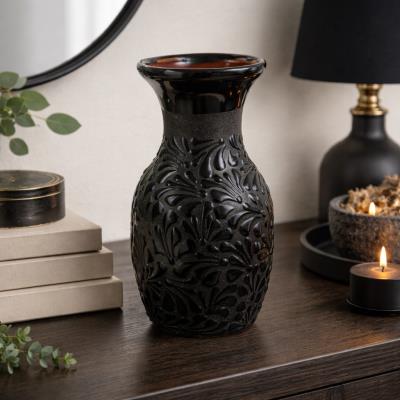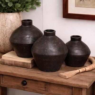 DESERT BLOOM TERRACOTTA CLAY VASE IN BLACK