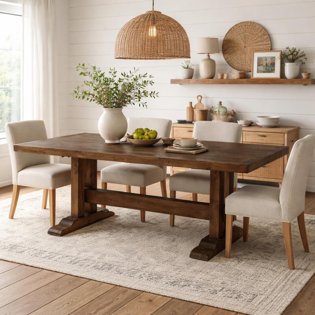 "Grand Canyon" - Solid wood dining table featuring aged natural wood finish and trestle base