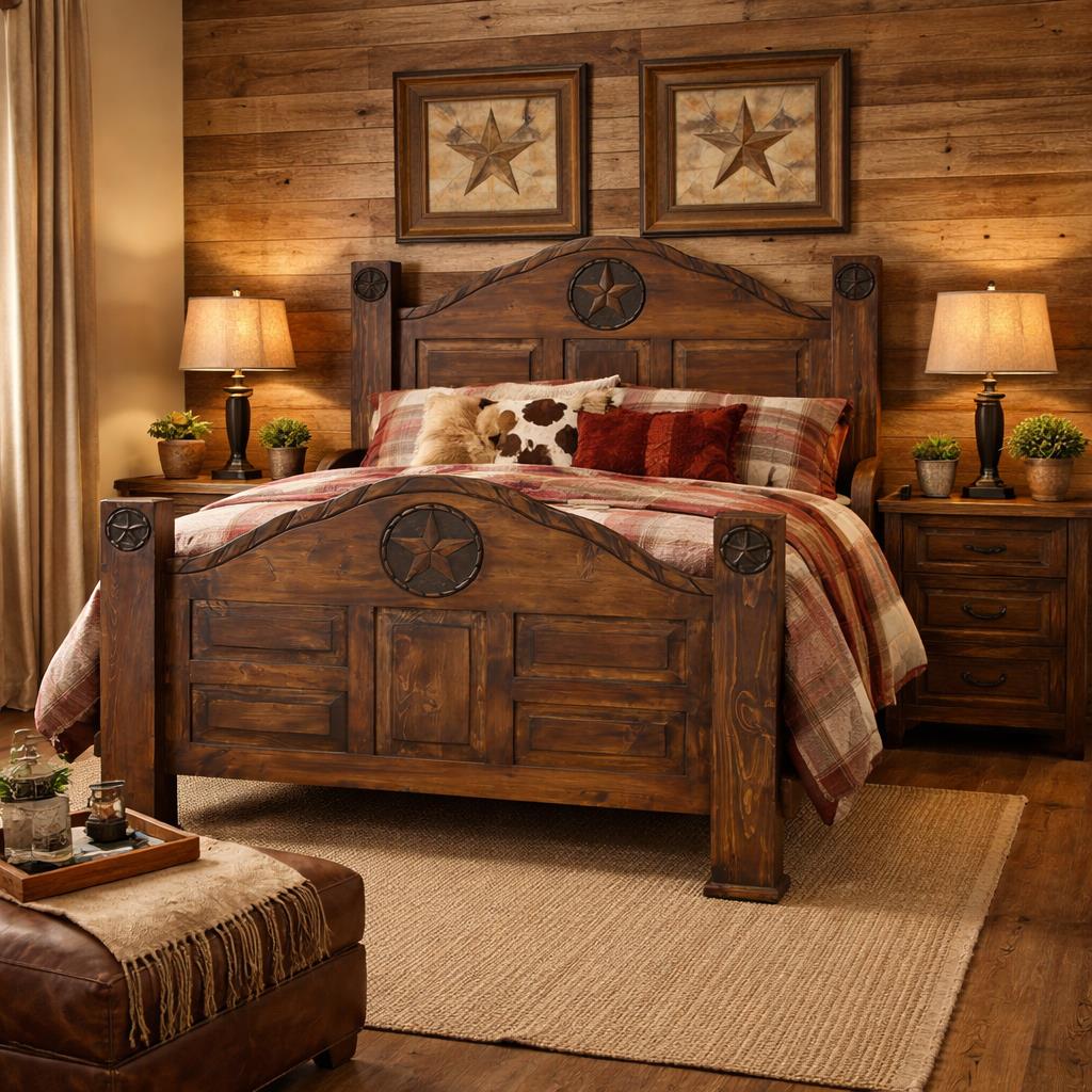 King Bed W/ Rope and Star (Medio Finish)