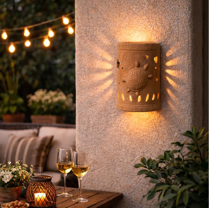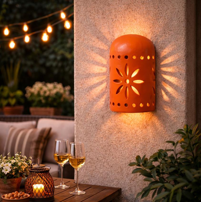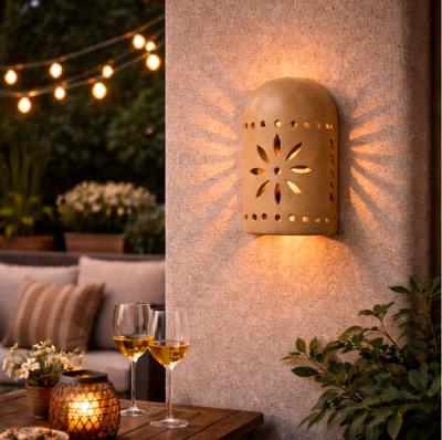 HERITAGE CLAY LIGHT COVER IN NATURAL FLORAL, HIGH FIRE CLAY WALL LIGHT COVER