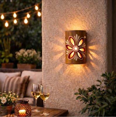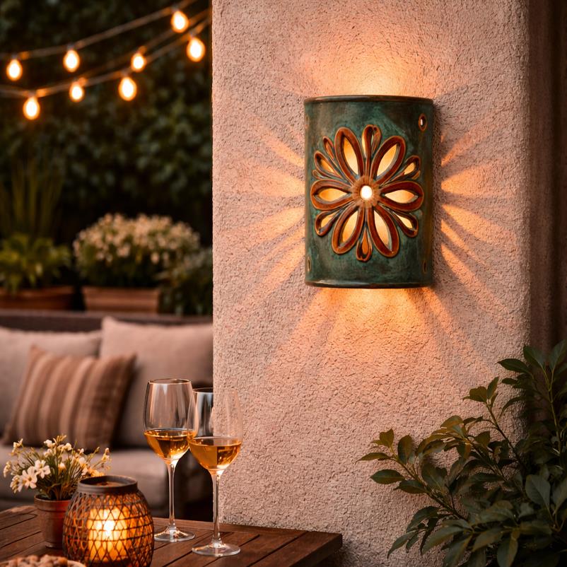 HERITAGE CLAY LIGHT COVER IN TURQUOISE FLORAL, HIGH FIRE CLAY WALL LIGHT COVER