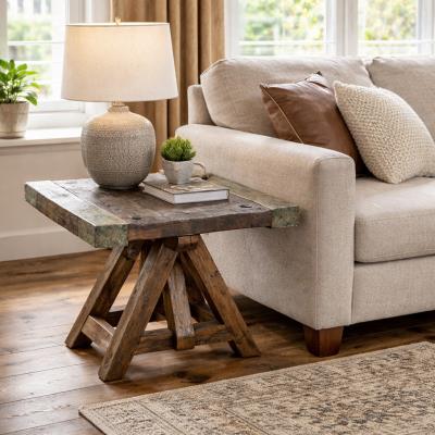 The Foundry Trunk Base Copper Top Dining/Entry Table