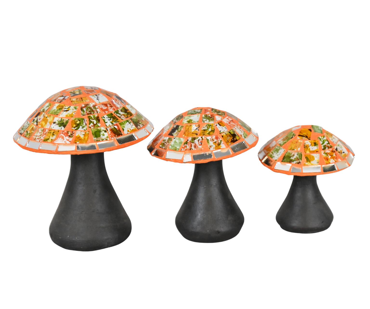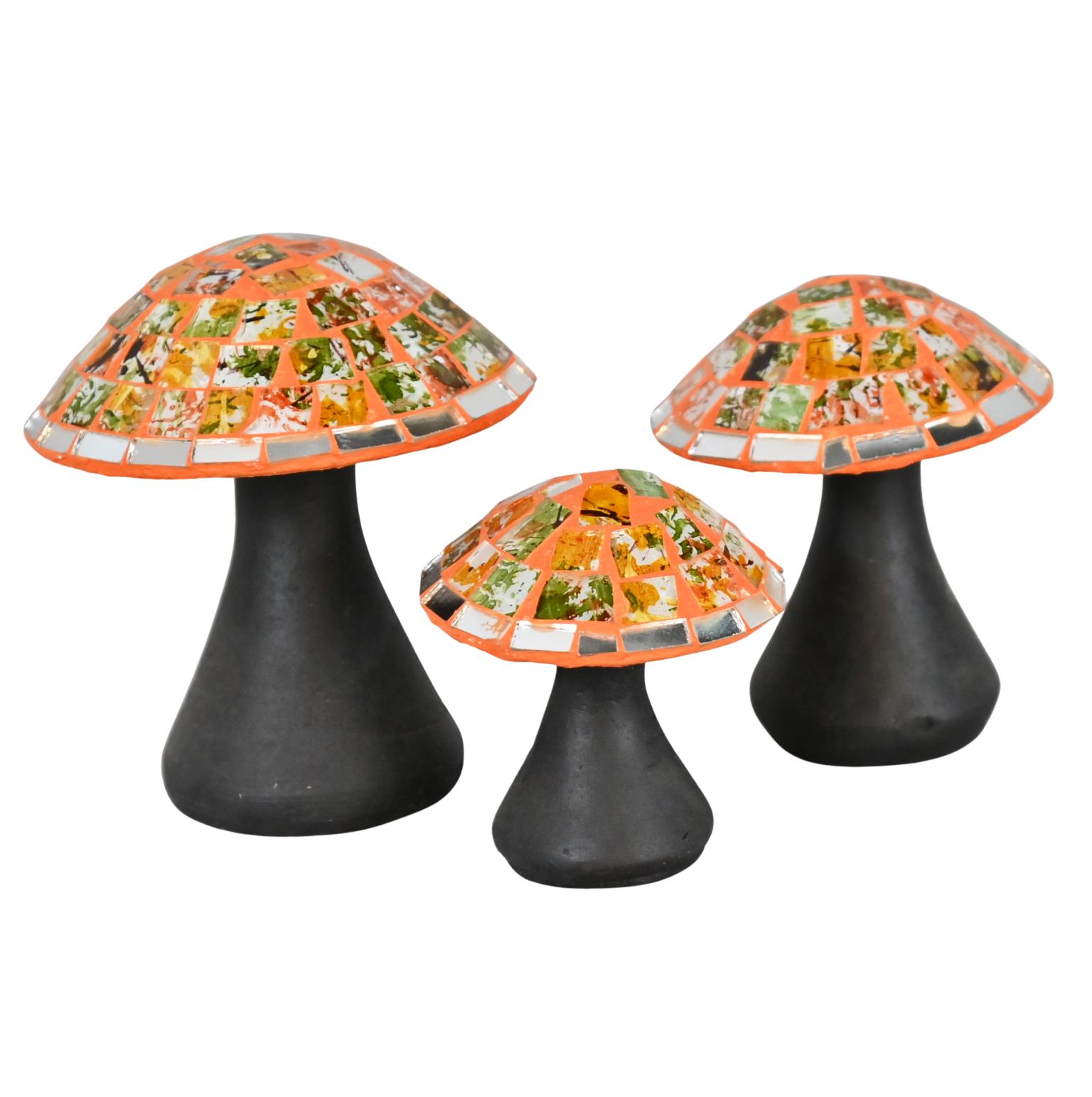 MOSAIC GLASS MUSHROOM FAMILY IN ORANGE